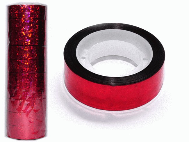 Клейкая лента с голографическим нанесением используется как обмотка для предметов художественной гимнастики. Продаётся упаковками, по 10 катушек в упаковке.